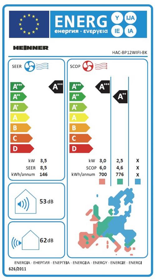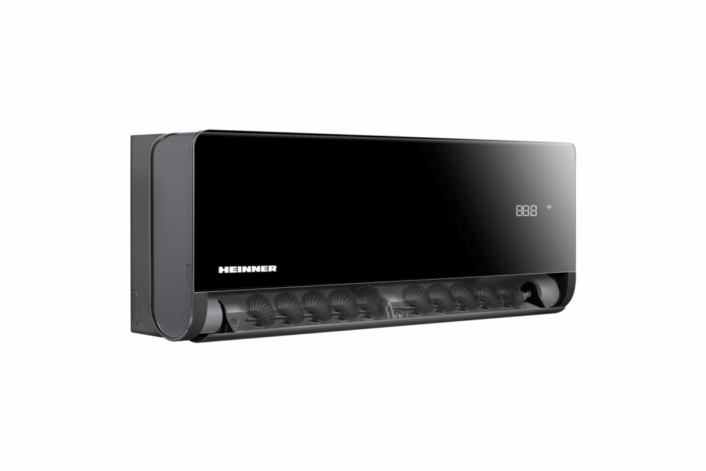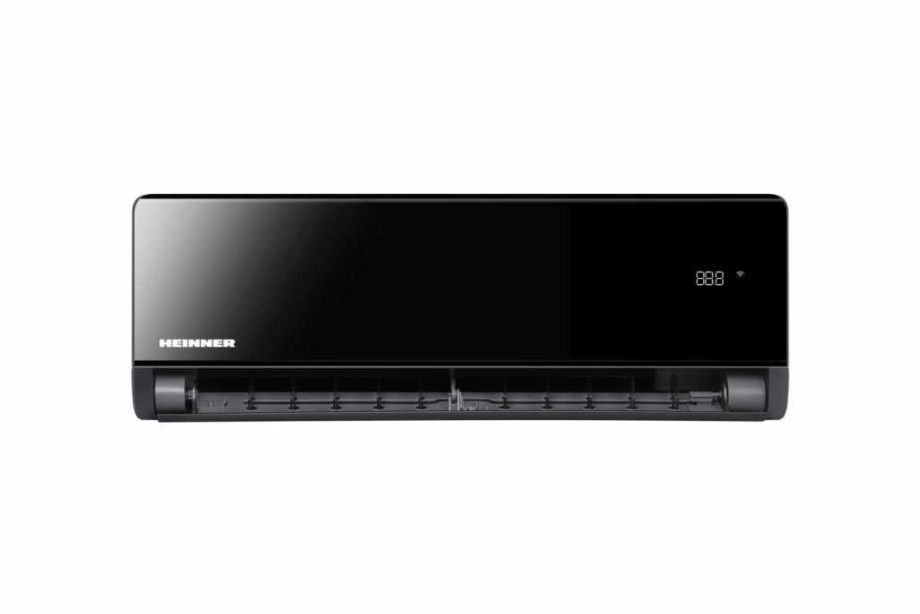 Aparat de aer conditionat HEINNER BLACKPEARL, 12000BTU, WiFi, clasa eenrgetica racire A+++/incalzire A++, Super ionizare, fucntie "Active clean", functie"Breeze away", functie "Cascade", functie ECO, functie mentine temperatura la 8⁰C, functie "Follow me", filtru cu densitate ridicata, filtru silver-ion, filtru HEPA BIO, carcasa: negru/panel negru oglinda
