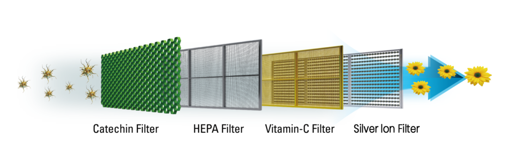 HEALTHY FILTER AIR CONDITIONER FILTERAC_4IN1, compatibilE cu model HAC-HS12EYEWIFI+++4-IN-1 MULTIPLE FILTER SYSTEM:Catechin FilterHEPA FilterSilver ion filterVitamin C filter