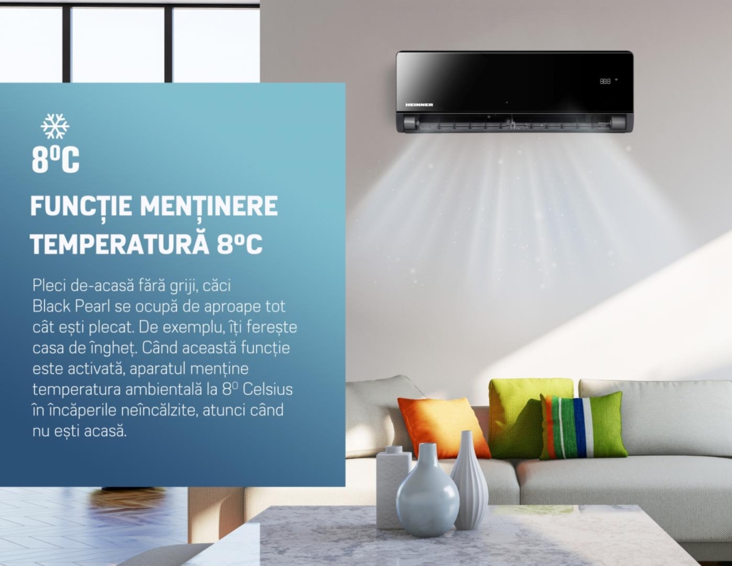 Air conditioner HEINNER BLACKPEARL, HAC-BP18WIFI-BK, 18000 BTU, WIFI control, energy class: cooling A++ / heating A+, Super ionization function, "Active Clean" function, "Breeze away" function, "Cascade" function, ECO function, 8°C heating function, "Follow me" function, high density filter, silver-ion filter, HEPA BIO filter, color: mirror black panel