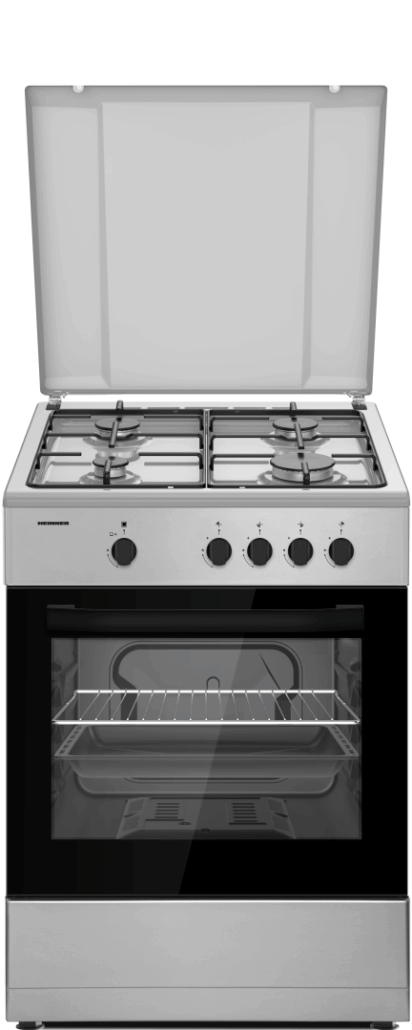 GAS COOKER HEINNER HFSC-SME66ISL, 60X60CM, 4 GAS BURNERS,ENAMEL SUPPORT, METALLIC LID, AUTO IGNITION FOR HOB, GAS SAFETY HOB AND OVEN, DOUBLE GLASS OVEN DOOR, SPARE LPG NOZZLES INCLUDED, OVEN TRAY AND GRID, DIMENSIONS ( WXDXH): 60X60X85 CM, COLOUR: SILVER