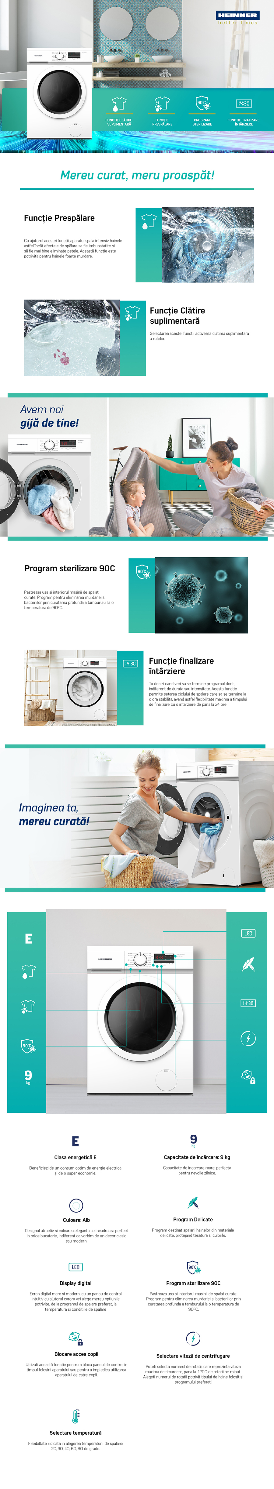 AUTOMATIC WASHING MACHINE HEINNER HWM-M9012DCE++, LOADING CAPACITY 9KG, SPIN SPEED 1200RPM, ENERGY EFFICIENCY CLASS E, 15 PROGRAMS, DIGITAL DISPLAY , QUICK PROGRAM 15 MIN, HYGIENE 90°C PROGRAM, DELICATE PROGRAM, EXTRA RINSE FUNCTION, PREWASH FUNCTION, DELAY END, SPIN SPEED SELECTION, TEMPERATURE SELECTOR, CHILD LOCK, DIMENSIONS (WXDXH): 59.5X56.5X85 CM, COLOR: WHITE