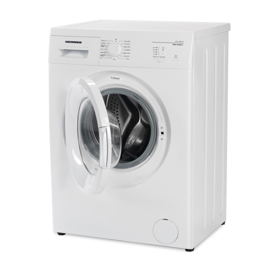 Automatic washing machine Heinner HWM-V5080D++, Loading capacity 5kg, Spin speed 800rpm, Energy efficiency class D, 15 programs, Quick program 15 min, Fast program 60 min, Delay start, Extra rinse function, Eco logic system, Foam detection system, Balance control system, Child lock, Dimensions (WxDxH): 59.7x49.7x84.5 cm, Color: White