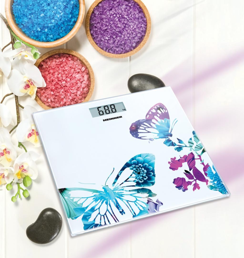 Bathroom scale Heinner Butterfly 150 HBS-150BTF, 150kg, 6 mm tempered glass platform, LCD