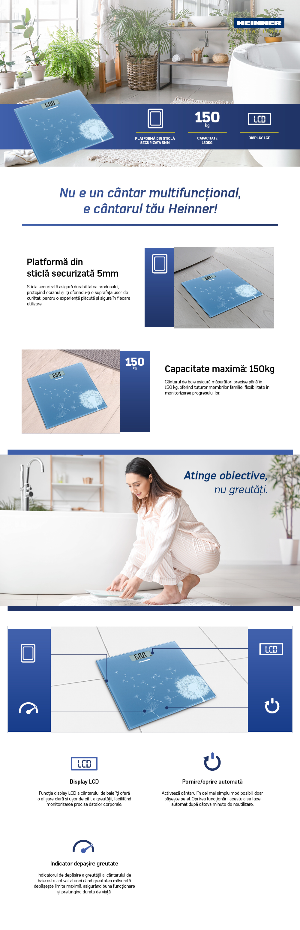 BATHROOM SCALE HEINNER HBS-BL150, 5MM TEMPERED GLASS, 150KG, LCD DISPLAY, DIVISION: 100G,