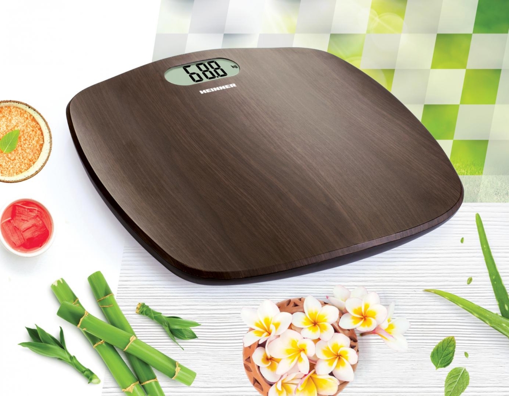 Bathroom scale Heinner DarkBamboo 180 HBS-BRW180BB, 180kg, bamboo design platform, LCD dis