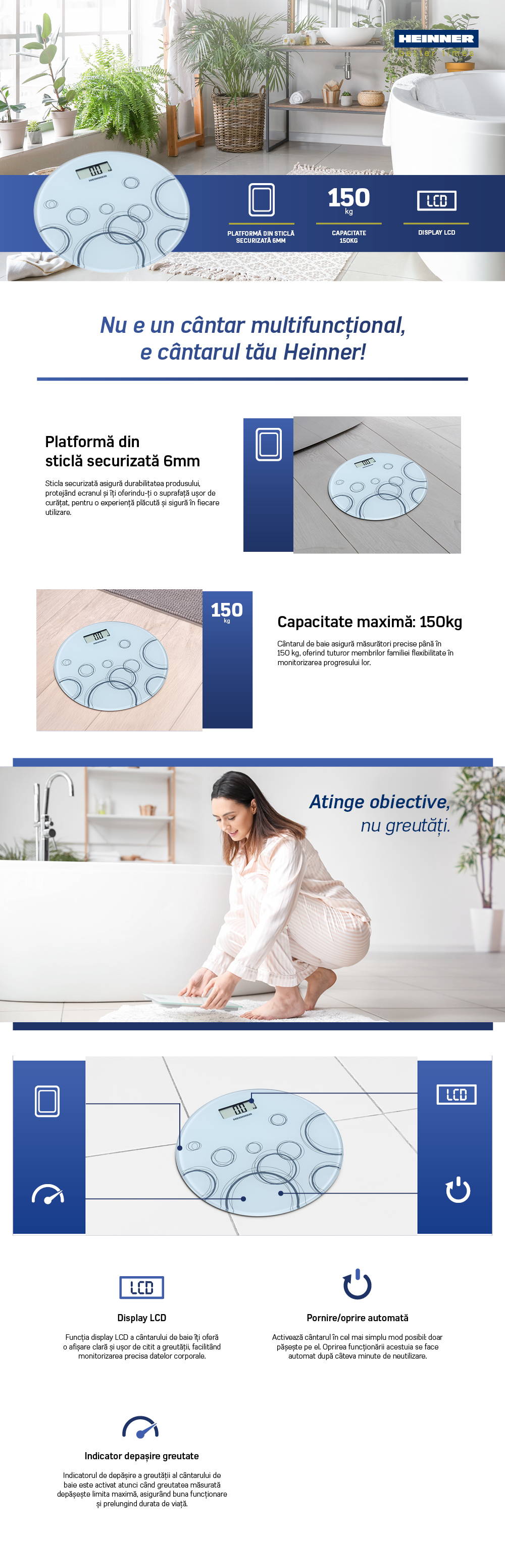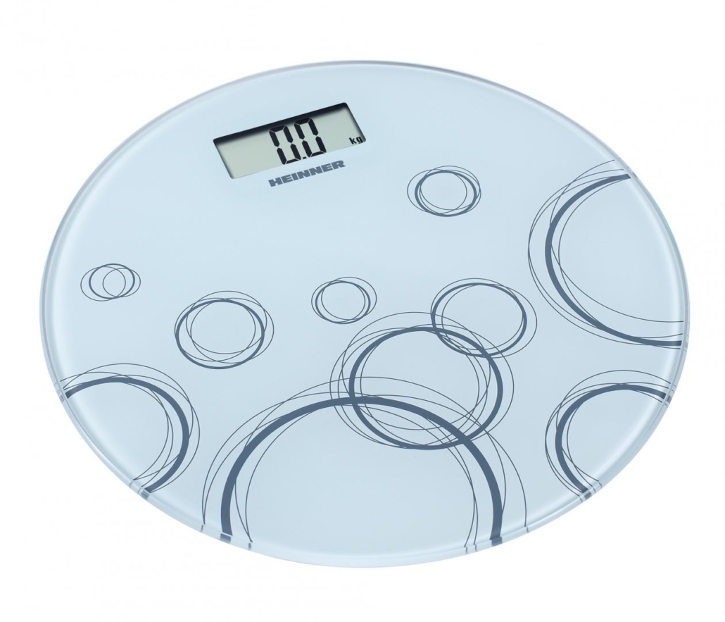 BATHROOM SCALE HEINNER HBS-WH150R, 6MM TEMPERED GLASS, 150KG, LCD DISPLAY, DIVISION: 100G, AUTOMATIC ON/OFF, BATTERY: 1 X CR2032 (INCLUDED), ULTRA SLIM COMPACT DESIGN, WHITE