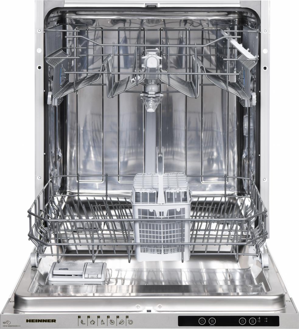 Built in dishwasher Heinner HDW-BI6613IE++, energy efficiency class E, 13 place settings, electronic control, LED display, 6 washing programs, Quick program 30’, Hygiene 70°C program , Auto Intensive program, delay timer option (1-19H), half load option, adjustable upper basket (loaded), protection against water damage – Aquastop, end of program acoustic indicator, water consumption: 12L/washing cycle, dimensions (WxDxH): 59.8 x 55 x 82 cm