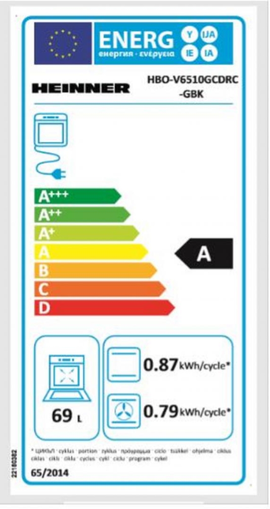 Built in oven Heinner HBO-V6510GCDRC-GBK, Multifunctional oven, Capacity 69L, 10 Functions, Energy efficiency class A, Digital Timer, Display touch, Grill, Fan function, Turbo function, Pizza function, Faster Grilling, Defrost function, Vap clean, Oven light, Key lock, Catalytic self-cleaning (Back-Left-Right walls), Triple glass oven door with inner removable glass, Pop-up buttons, Wire racks, Standard+deep tray and grid, Dimensions: 59.5x55.0x59.5 cm, Color: Black glass