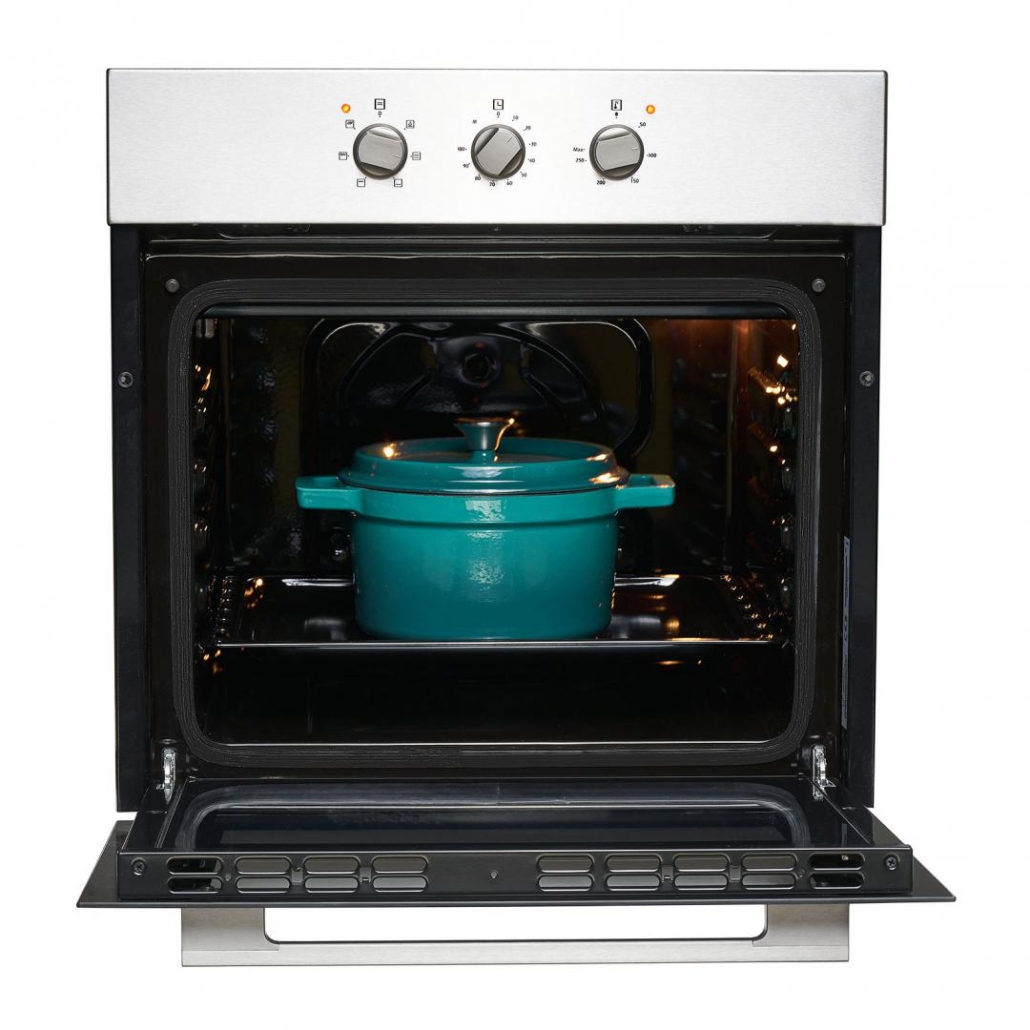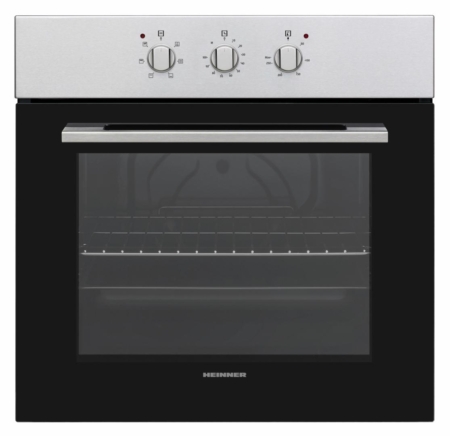 Built in oven Heinner HBO-V656G-IX, Static oven, Capacity 72L, 6 functions, Energy efficiency class A, Mechanical timer, Grill, Oven light, Double glass oven door with inner removable glass, Oven tray and grid, Dimensions (WxDxH): 59.5x 55.0x59.5 cm, Color: Stainless steel