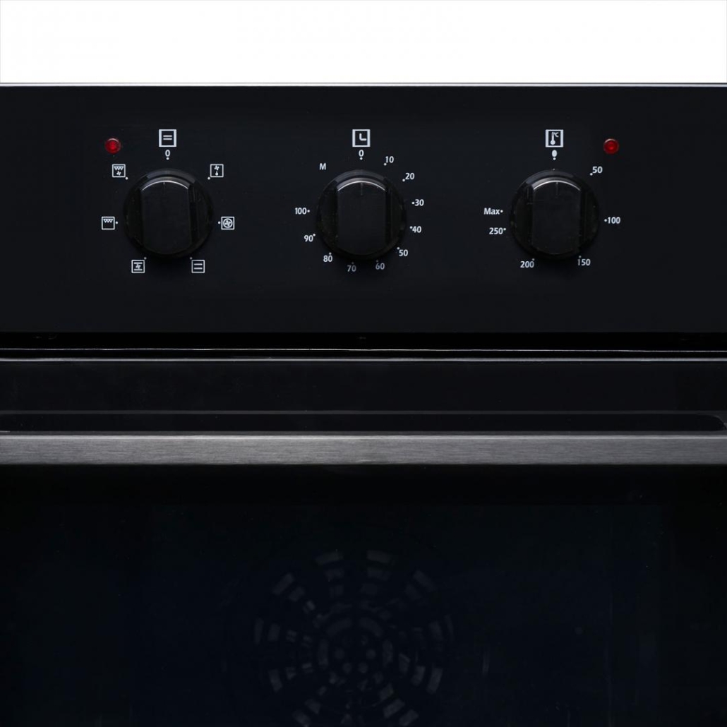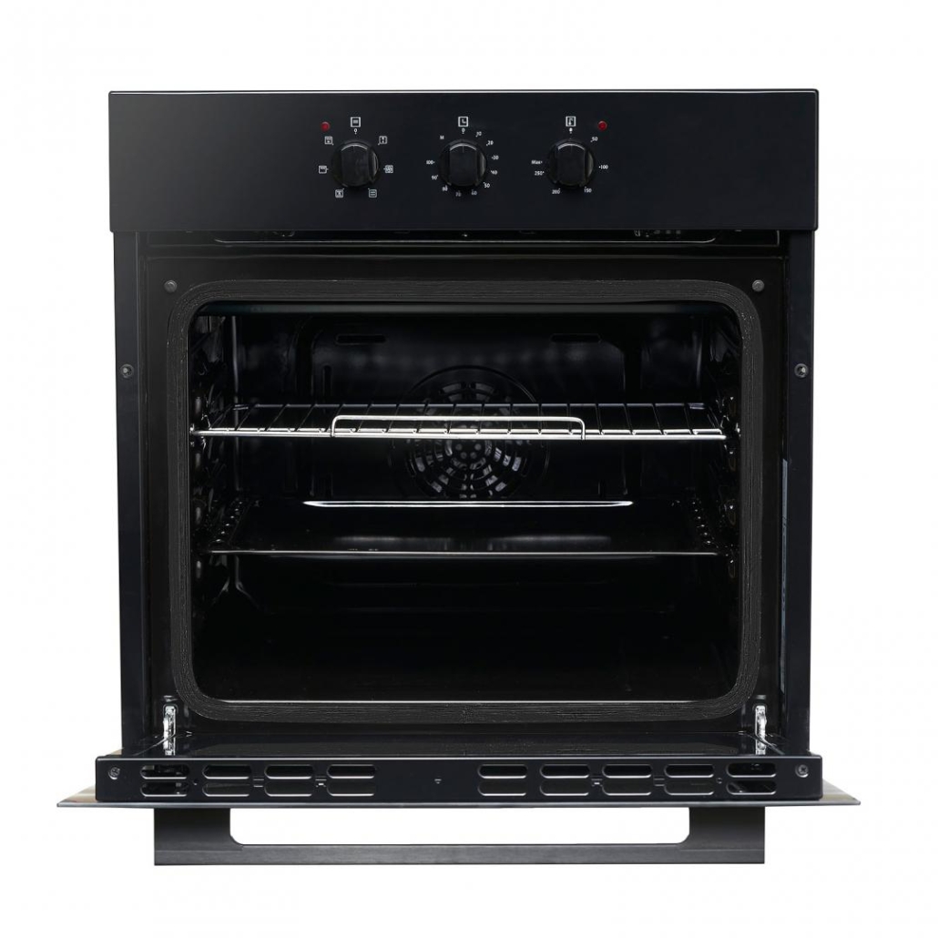 Built in oven Heinner HBO-V656GC-BK, Multifunctional oven, Capacity 65L, 6 functions, Energy efficiency class A, Mechanical timer, Grill, Fan function, Oven light, Double glass oven door with inner removable glass, Oven tray and grid, Dimensions (WxDxH): 59.5x55.0x59.5 cm, Color: Black