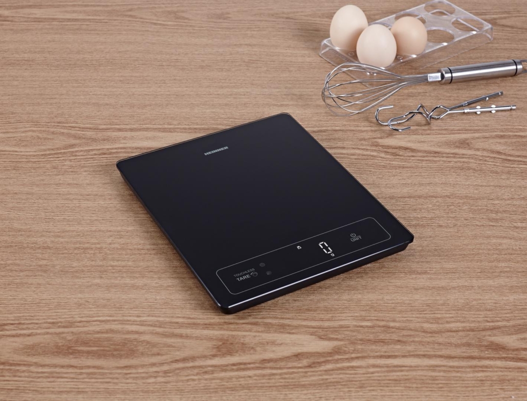 SMART KITCHEN SCALE HEINNER HKS-SM15BK, 15KG, TEMPERED GLASS 4MM, BLUETOOTH FUNCTION, LED DISPLAY, TOUCH CONTROL, TOUCHLESS TARA FUNCTION, DIVISION: 1G, LIQUID WHEIGHTING FUNCTION, VERTICAL STORAGE, BATERIES: 3 X 1.5V AAA (NOT INCLUDED), BLACK