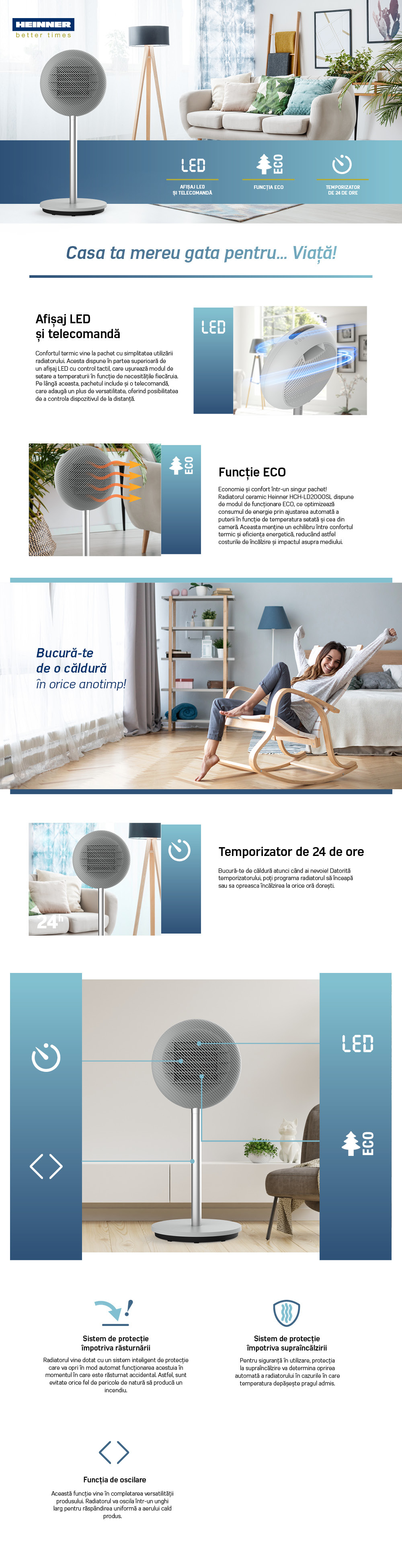 CERAMIC HEATER HEINNER HCH-LD2000SL, POWER: 1300/2000W, LED DISPLAY, TOUCH CONTROL, REMOTE CONTROL, ECO FUNCTION, AUTO-TURN OFF FUNCTION, TIMER: 24H, OSCILLATION, TIP-OVER SWICH, OVER-HEATING PROTECTION, EASY-CARRY HANDLE, COLOR: GREY