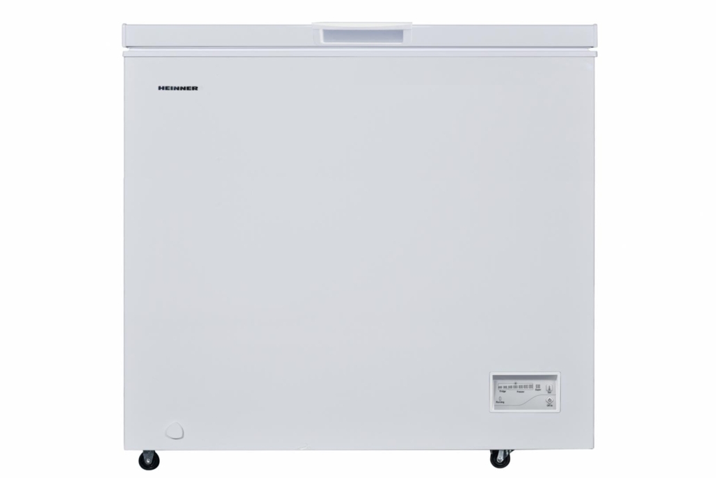 Chest freezer Heinner HCF-200CNHF+, Energy efficiency class: F, Total capacity: 198L, Convertible function (fridge/freezer), Electronic control, Resistance to low temperatures (operates at low temperatures - up to -15 ° C), Resistance to voltage variations 175 ~ 255v, Waterproof display, Fast freezing function, 1 plastic basket, Manual defrost, Wheels for easy transport, Freezing capacity: 10kg/24h, Dimensions (WxDxH): 91 x 55.5 x 84.7 cm