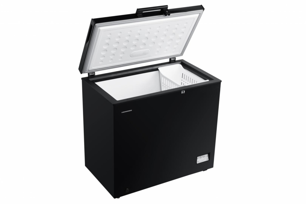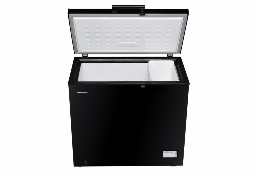 Chest freezer Heinner HCF-205NHBKE++, energy efficiency class: E, total capacity: 198L, electronic control, resistance to low temperatures (operates at low temperatures - up to -15 ° C), resistance to voltage variations 175 ~ 255V, waterproof display, Fast freezing function, 1 plastic basket, manual defrost, wheels for easy transport, freezing capacity: 12kg/24h, dimensions (WxDxH): 90.5 x 54.5 x 84.5 cm, color: black