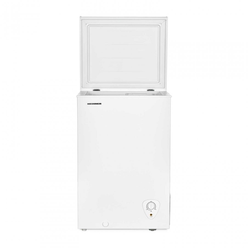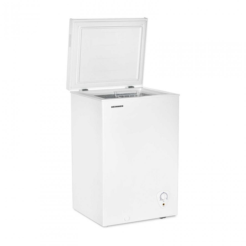 Chest freezer Heinner HCF-H98F+, Energy efficiency class: F, Total capacity: 95L, Mechanical control with adjustable thermostat, 1 wire basket, Integrated handle, Manual defrost, Freezing capacity: 4.8 kg/24h, Dimensions (WxDxH): 54.6 × 47.9 × 85.4 cm