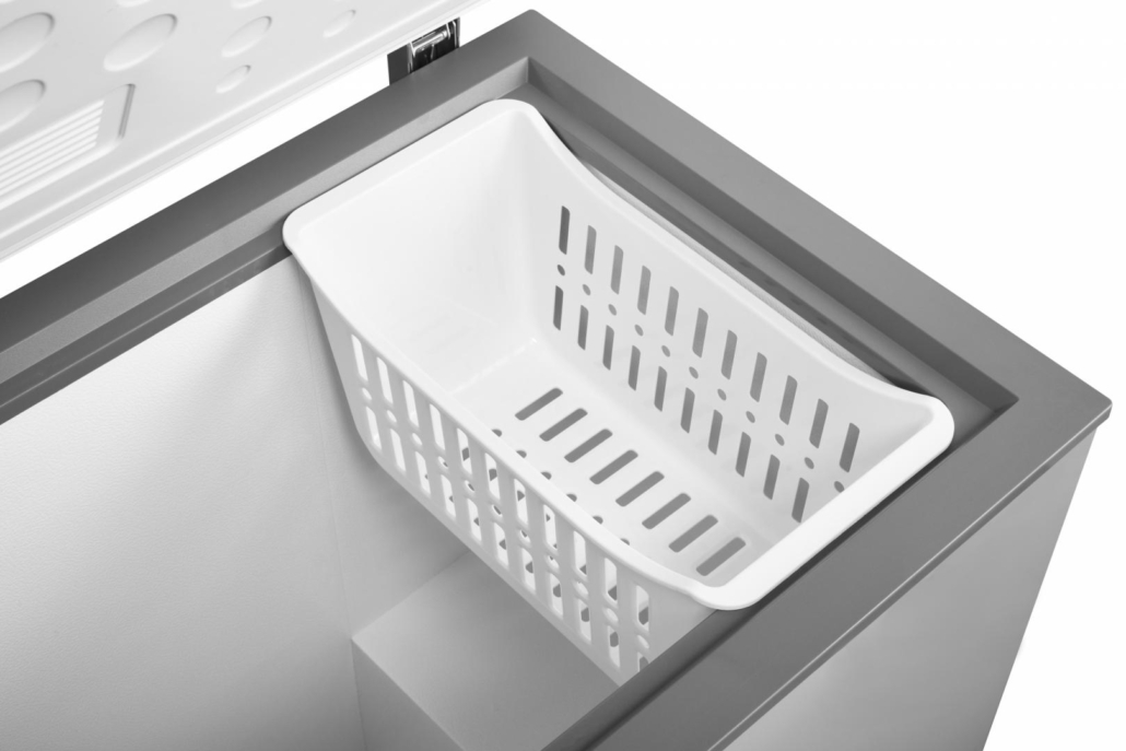 Chest freezer Heinner HCF-205NHSE++, energy efficiency class: E, total capacity: 198L, electronic control, resistance to low temperatures (operates at low temperatures - up to -15 ° C), resistance to voltage variations 175 ~ 255V, waterproof display, Fast freezing function, 1 plastic basket, manual defrost, wheels for easy transport, freezing capacity: 12kg/24h, dimensions (WxDxH): 90.5 x 54.5 x 84.5 cm, color: silver