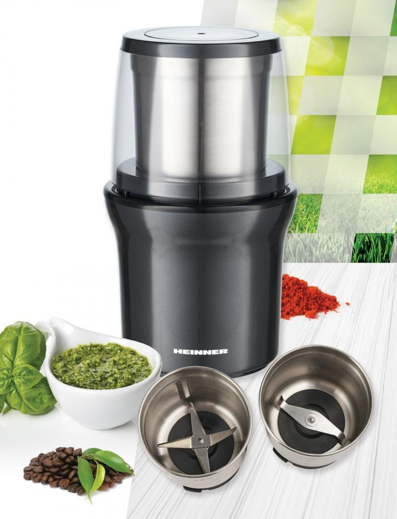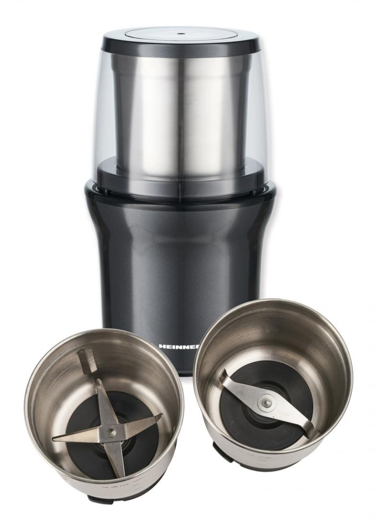 Electric coffee grinder Heinner Gemmini HCG-200DGIX2, 200W, capacity: 70g, 2 detachable st
