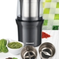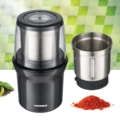Electric coffee grinder Heinner Gemmini HCG-200DGIX2, 200W, capacity: 70g, 2 detachable stainless steel cups, wet and dry grinding, stainless steel grinding blade, push-top lid for easy operation, stainless steel housing