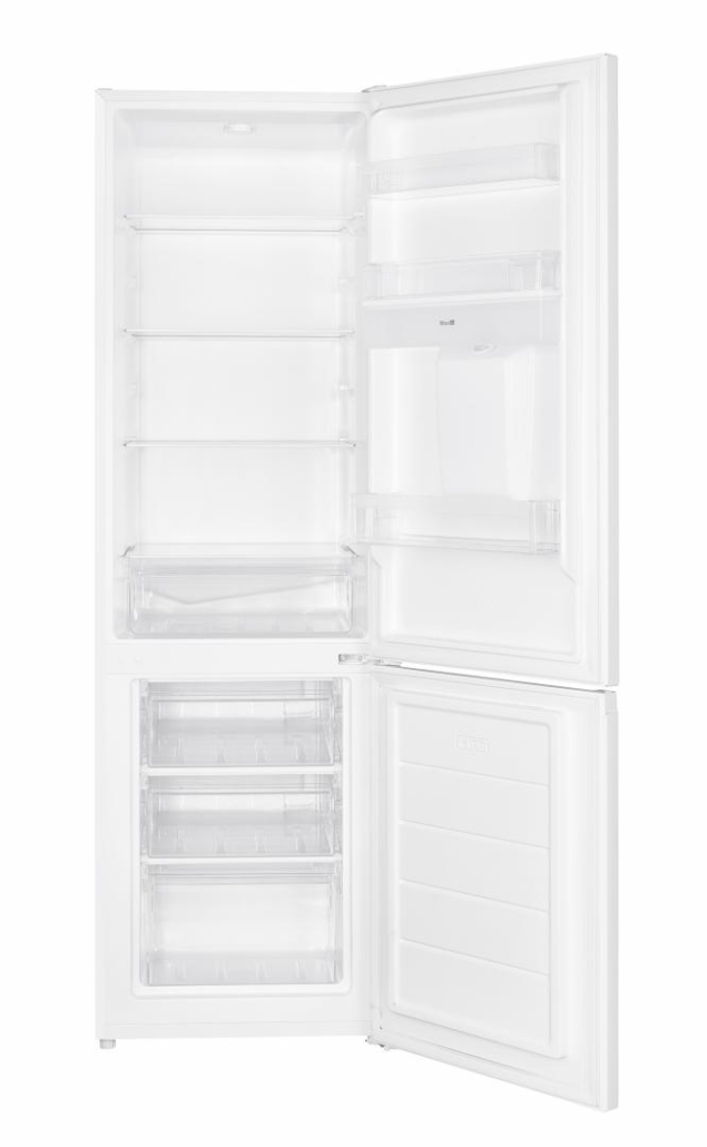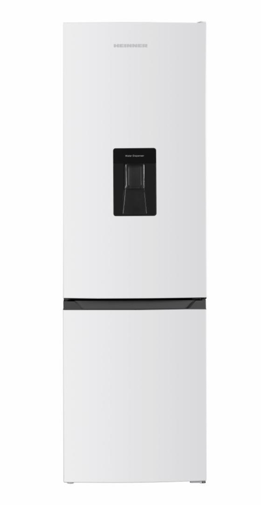Combi fridge Heinner HC-HM260INVWDD,, energy efficiency class: D, Inverter compressor, water dispenser, total capacity: 260L, fridge capacity: 189L, freezer capacity: 71L, electronic control with adjustable thermostat, LED light, 3 fridge glass shelves, crisper drawer, 3 freezer drawers, reversible doors, egg tray, ice cube tray, freezing capacity: 3.2 kg/24h, dimensions (WxDxH): 55 x 56 x 180 cm, color: White