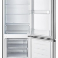 Combi fridge freezer Heinner HC-N269SF+, Energy efficiency class: F, Total capacity: 269L, Fridge capacity: 198L, Freezer capacity: 71L, Mechanical control with adjustable thermostat, LED light, 3 fridge glass shelves, crisper drawer, 3 freezer drawers, Reversible doors, Egg tray, Ice cube tray, Freezing capacity: 3.2 kg/24h, Dimensions (WxDxH): 55 x 55.8 x 180 cm, Colour: Silver
