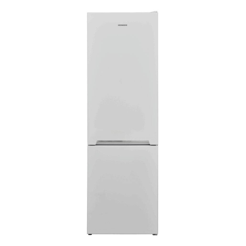 Combi fridge freezer Heinner HC-V268F+, Energy efficiency class: F, Less Frost cooling system, Total capacity: 268L, Fridge capacity: 184L, Freezer capacity: 84L, Mechanical control with adjustable thermostat, LED light, Super freezing, 3 fridge glass shelves, 3 freezer drawers, 1 compartment for fruits and vegetables, Egg tray, Ice cube tray, Freezing capacity: 3.9kg/24h, Dimensions (WxDxH): 54 x 59.5 x 170 cm, Colour: White