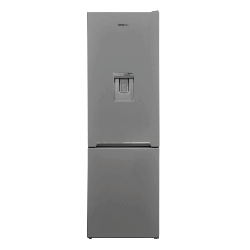 Combi fridge freezer Heinner HC-V270SWDE++, Energy efficiency class: E, Less Frost cooling system, Water dispenser, Less Frost cooling system, Total capacity: 268L, Fridge capacity: 184L, Freezer capacity: 84L, Mechanical control with adjustable thermostat, LED light, Super freezing, 3 fridge glass shelves, 3 freezer drawers, 1 compartment for fruits and vegetables, Egg tray, Ice cube tray, Cooling capacity: 3.9kg/24h, Dimensions (WxDxH): 54 x 59.5 x 170 cm, Colour: Silver