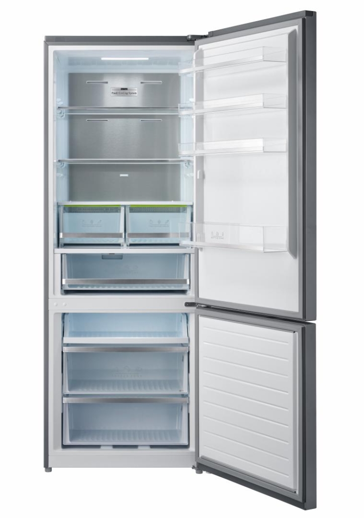Combi fridge Heinner HCNF-M435INVHXE++, No Frost, Inverter compressor, energy efficiency class: E, total capacity: 435 L, refrigerator capacity: 316 L, freezer capacity: 119 L, LED display with touch control, InoxCool technology, ExtraSpace –70cm width, Super cooling function, Super freezing function, open door alarm, child lock, LED light, chiller compartment, 2 crisper drawers with humidity control, 2 fridge glass shelves, 2 freezer drawers + Pizza tray, reversible doors, freezing capacity: 9kg/24h, dimensions (WxDxH): 70 x 66.6 x 188 cm, color: Inox look