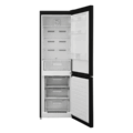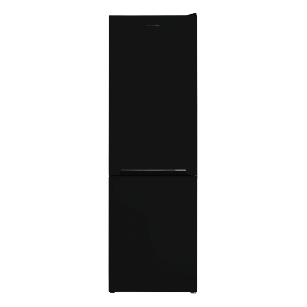Combi fridge Heinner HCNF-V291BKF+, No Frost Multicooling, energy efficiency class: F, total capacity: 294 L, refrigerator capacity: 207 L, freezer capacity: 77 L, electronical control with internal display, Freezer Shield technology, LED light, ECO Function, Super freezing function, open door alarm, 3 fridge glass shelves, 1 convertible compartment (chiller/crisper), 3 freezer drawers, egg tray, ice cube tray, freezing capacity: 5 kg/24h, dimensions (WxDxH): 59.5 x 60 x 186cm, color: black with chromed strip decoration on handle