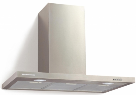 Decorative cooker hood Heinner HDCH-690TSS, Max suction power: 589.5 m³/h, 3 power levels, Motor: 1 x 190W, LED light: 2 x 1.5W, 3 aluminum filters, Push buttons, Air outlet diameter: 150mm, Dimensions (WxDxH): 90x50x(44-82) cm, Color: Stainless steel