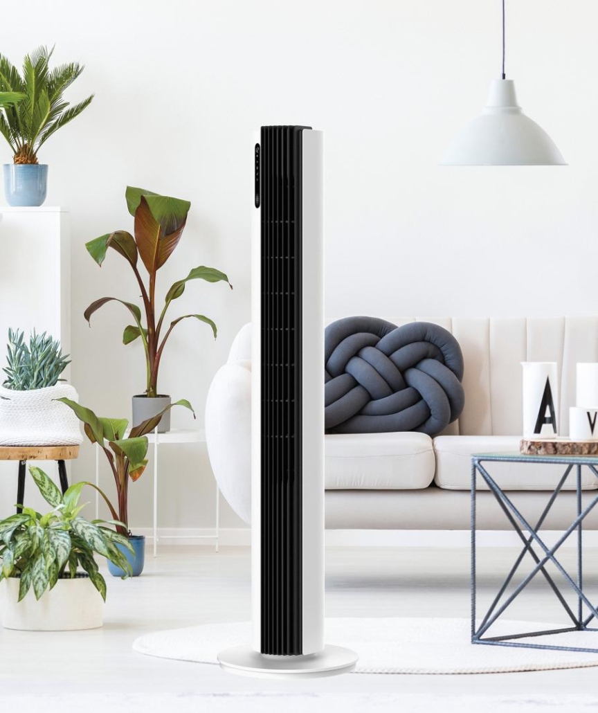 Digital tower fan HEINNER HTF-LDC30WH, electronic sterilization function to purify the air, DC motor, LED display, touch control, 90° automatic horizontal oscillation, auto dimming function, 12 speeds setting, 3 wind modes: natural, sleep, normal; remote control, power: 30W, height: 110 cm, white