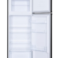 Double door refrigerator Heinner HF-H2206BKE++, energy efficiency class: E, total capacity: 206L, fridge capacity: 169L, freezer capacity: 37L, mechanical control with adjustable thermostat, LED light, 3 fridge glass shelves, 1 compartment for fruits and vegetables, reversible doors, egg tray, freezing capacity: 2.4kg/24h, dimensions (WxDxH): 54.5 x 55.5 x 143 cm, color: Black