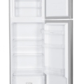Double door refrigerator Heinner HF-H2206SF+, Energy efficiency class: F, Total capacity: 206L, Fridge capacity: 169L, Freezer capacity: 37L, Mechanical control with adjustable thermostat, LED light, 3 fridge glass shelves, 1 compartment for fruits and vegetables, Reversible doors, Egg tray, Freezing capacity: 2.4kg/24h, Dimensions (WxDxH): 54.5 x 55.5 x 143 cm, Colour: Silver