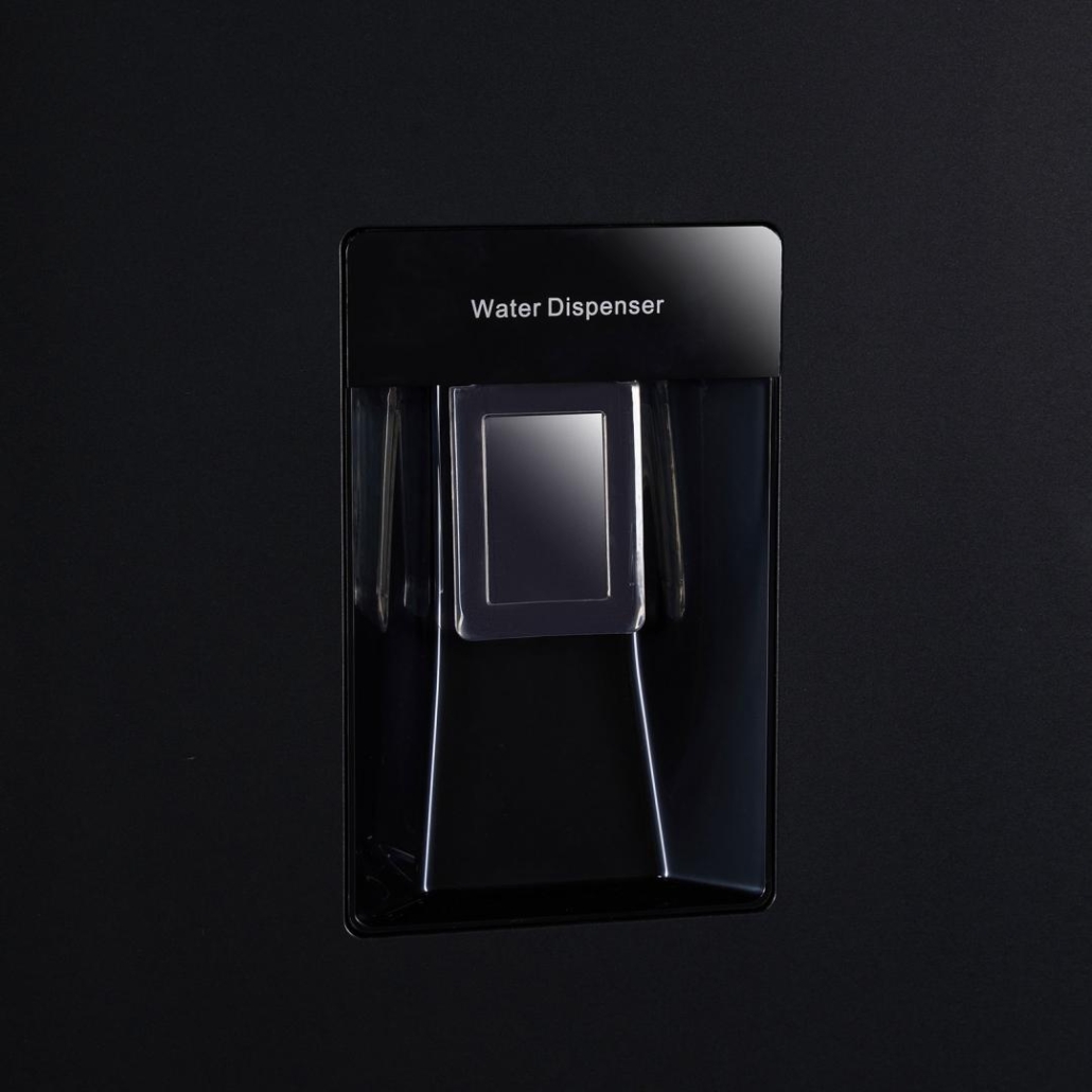 Refrigerator Heinner HF-HM413NFDXWDE++, Full No Frost, Inverter compressor, energy efficiency class: E, water dispenser, total caapcity: 413 L, fridge capacity: 319 L, freezer capacity: 94 L, electronic control with touch display, LED light, Power cool function, Child lock, 3 fridge glass shelves, crisper drawer with humidity control, Chiller compartment, 1 freezer glass shelf, reversible doors, egg tray, ice cubes tray, freezing capacity: 4.4kg/24h, dimensions (WxDxH): 70 x 68 x 178 cm, color: Dark Inox