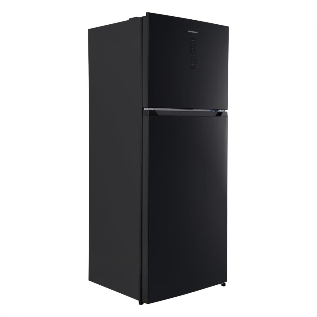 Refrigerator Heinner HF-HM415NFDXE++, Full No Frost, Inverter compressor, energy efficiency class: E, total caapcity: 415 L, fridge capacity: 321 L, freezer capacity: 94 L, electronic control with touch display, LED light, Power cool function, Child lock, 3 fridge glass shelves, crisper drawer with humidity control, 1 freezer glass shelf, reversible doors, egg tray, ice cubes tray, freezing capacity: 4.4kg/24h, dimensions (WxDxH): 70 x 68 x 178 cm, color: Dark Inox