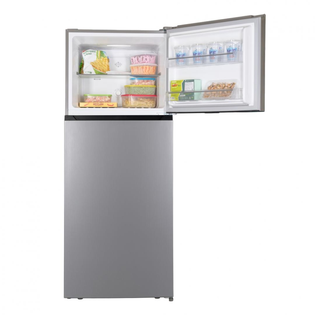 Refrigerator Heinner HF-HM415NFSE++, Full No Frost, Inverter compressor, energy efficiency class: E, total caapcity: 415 L, fridge capacity: 321 L, freezer capacity: 94 L, electronic control with touch display, LED light, Power cool function, Child lock, 3 fridge glass shelves, crisper drawer with humidity control, 1 freezer glass shelf, reversible doors, egg tray, ice cubes tray, freezing capacity: 4.4kg/24h, dimensions (WxDxH): 70 x 68 x 178 cm, color: Silver