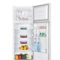 Double door refrigerator Heinner HF-HS205E++, energy efficiency class: E, total capacity: 206L, fridge capacity: 165L, freezer capacity: 41L, mechanical control with adjustable thermostat, LED light, 3 fridge glass shelves, 1 compartment for fruits and vegetables, reversible doors. egg tray, ice cube tray, freezing capacity: 2Kg/24h, dimensions (WxDxH): 55 x 54.2 × 143.4 cm, color: White