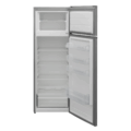 Double door refrigerator Heinner HF-V240SE++, energy efficiency class: E, Less frost cooling system, total capacity: 242L, fridge capacity: 201L, freezer capacity: 41L, mechanical control with adjustable thermostat, LED light, Super freezing function, 3 fridge glass shelves, compartment for fruits and vegetables, reversible doors, egg tray, ice cube tray, freezing capacity: 2.6kg/24h, dimensions (WxDxH): 54 x 57 x 161 cm, chromed decoration on handle, color: silver