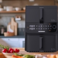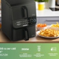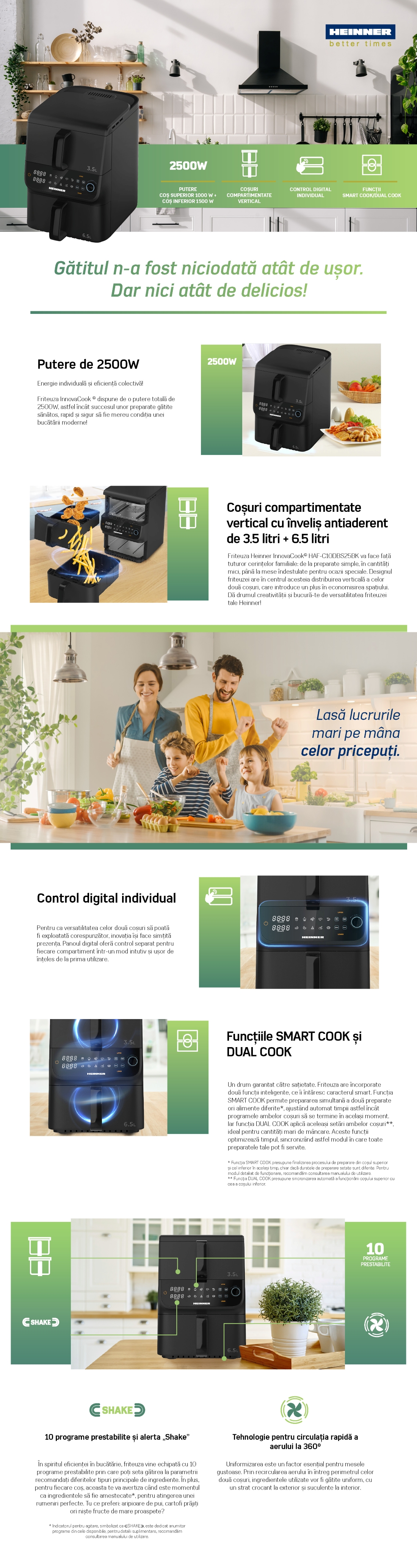 DUAL-LAYER AIR FRYER HEINNER HAF-C10DBS25BK, 2500W (1000+1500W), CAPACITY: 10L (3.5+6.5L), 360° HOT AIR CIRCULATION TECHNOLOGY, METAL CAVITY, DIGITAL CONTROL + MULTIPURPOSE CONTROL KNOB, FUNCTIONS: SMART + DUAL COOKING, TEMPERATURE: 80-200?, TIMER 60 MIN, 10 PRESET PROGRAMS, DETACHABLE BASKETS WITH NONSTICK COATING, BLACK