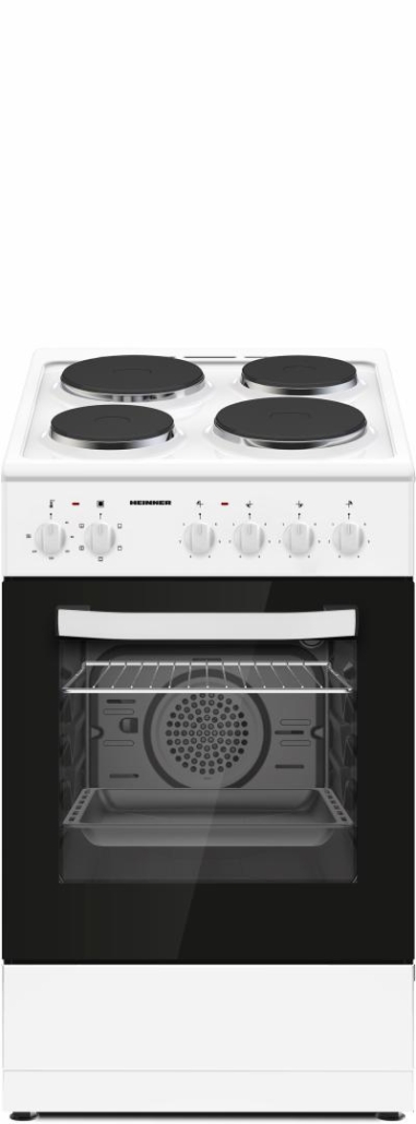 ARAGAZ ELECTRIC HEINNER HFSC-S56E4HMWH, 50X60CM, 4 PLITE ELECRICE, CUPTOR ELECTRIC, CLASA A, 6 FUNCTII, GRILL, VENTILATIE, LUMINA CUPTOR, USA CUPTOR CU GEAM DUBLU DETASABIL, TAVA SI GRATAR CROMAT, DIMENSIUNI ( LXAXI): 50X60X86 CM, CULOARE: ALB