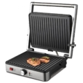 Electric grill Heinner HEG-K2000SS, 2000W, non-stick coating fixed plates, adjustable temperature, 180 degree opening, cool touch handle, power and ready light indicator, detachable drip tray, silver