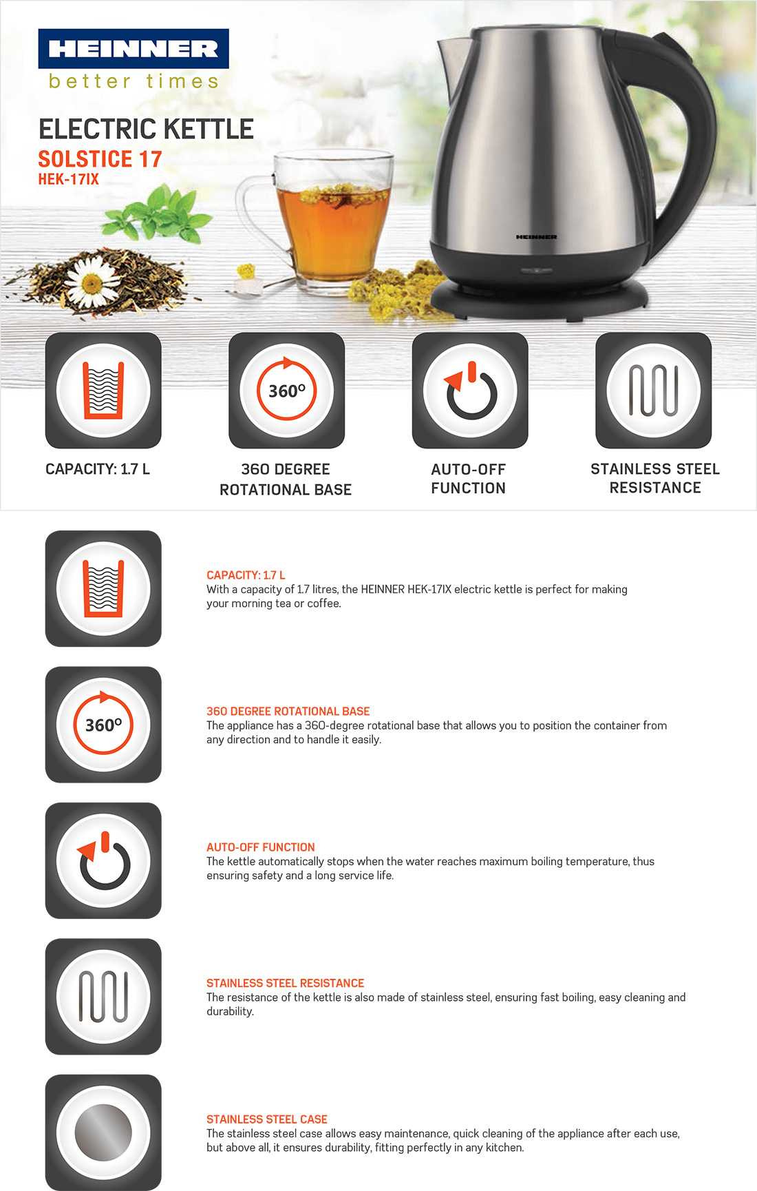 ELECTRIC KETTLE HEINNER HEK-17IXC