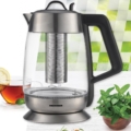 Electric kettle with tea filter Heinner Cosmo 18 HEK-TF18GX, 1850-2200W, with tea filter, 1.8l, led lightning depending on the set temperature, stainless steel heating element, boil dry protection, automatic shut off, temperature settings (60 - 100°c), keep warm function, glass body