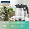 ELECTRIC KETTLE WITH TEA FILTER HEINNER HEK-TF2200GBK, POWER: 1850-2200W, 1.7L, DETACHABLE TEA FILTER, LED LIGHT RING, AUTO-OFF, BOIL-DRY PROTECTION, STAINLESS STEEL HEATING ELEMENT, GLASS BODY HEAT RESISTANCE