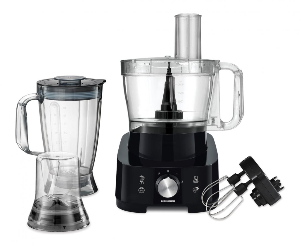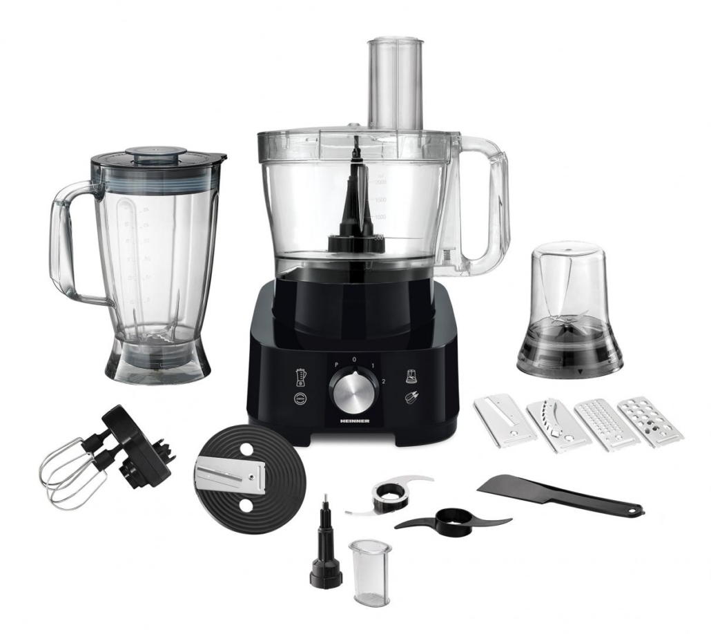 Food processor Heinner Cookery Chef HFP-1000BK, 1000W, processing bowl capacity: 3.5l, blender capacity: 1.8l, blender and grinder, stainless steel beaters assembly, 2 speeds + pulse function, stainless steel blade, chopping and slicing accessories, black