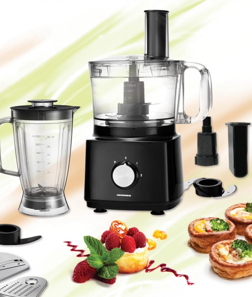 Food processor Heinner Cuisine Chef 750 HFP-750BK, 750W, 2 speeds + pulse, stainless steel
