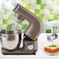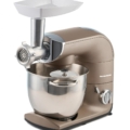 Food processor Heinner Calypso HPM-L1500DC, 1500W, planetary mixing, stainless steel bowl: 5.5l, stainless steel whisk, die-cast aluminum hook and beater, 6 speed + Pulse, metallic gears, die cast aluminum housing, meat grinder accessory included, outlet for blender, adjustable accessories (with french spanner #17), anti-splash guard, bronze look