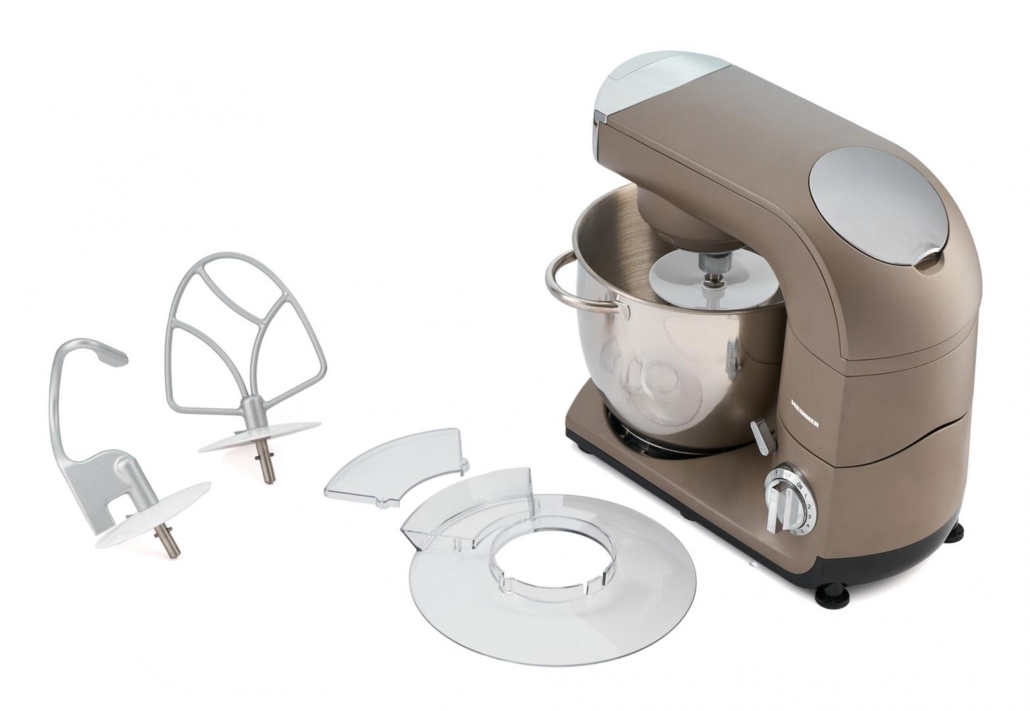 Food processor Heinner Calypso HPM-L1500DC, 1500W, planetary mixing, stainless steel bowl: 5.5l, stainless steel whisk, die-cast aluminum hook and beater, 6 speed + Pulse, metallic gears, die cast aluminum housing, meat grinder accessory included, outlet for blender, adjustable accessories (with french spanner #17), anti-splash guard, bronze look