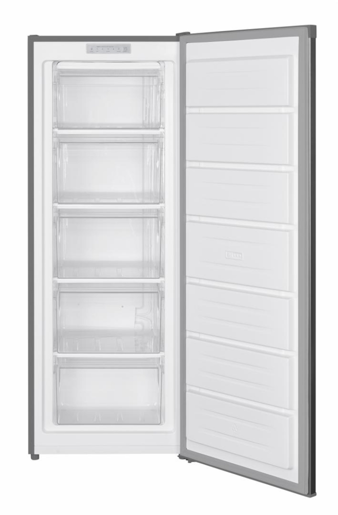 Freezer Heinner HFF-168NHXF+, energy efficiency class: F, total capacity: 168L, electronic control, display with LED indicators, 5 compartments, Super freezing function, manual defrost, reversible door, freezing capacity: 7.8kg/24h, noise level: 40dB, dimensions (WxDxH): 54.4 x 57.1 x 142.6 cm, color: Inox look