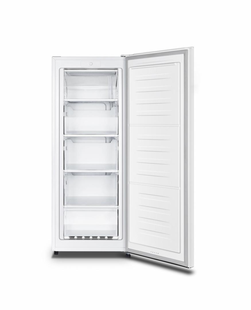 Freezer Heinner HFF-N165SF+, Energy efficiency class: F, Total capacity: 165L, Mechanical control with adjustable thermostat, 5 freezer compartments, Reversible door, Freezing capacity: 7.6kg/24h, Dimensions (WxDxH): 55 × 58.8 × 143.4 cm, Colour: Silver