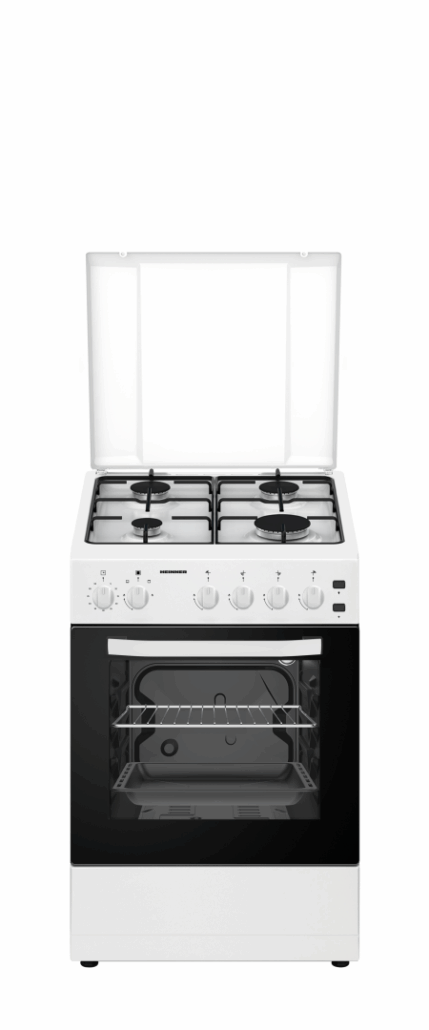 GAS COOKER HEINNER HFSC-S50LITGWH, 50X50CM, 4 GAS BURNERS, ENAMEL PAN SUPPORT, METAL LID, AUTO IGNITION, GAS SAFETY HOB AND OVEN, TIMER, GRILL, INTERIOR OVEN LIGHT, REMOVABLE DOUBLE GLASS OVEN DOOR, NG SETTLED, SPARE LPG NOZZLES INCLUDED, OVEN TRAY AND GRID, DIMENSIONS (WXDXH): 50X50X85 CM, COLOR: WHITE
